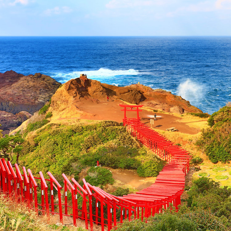 稲成神社。 紅鳥居と龍宮の潮吹き。