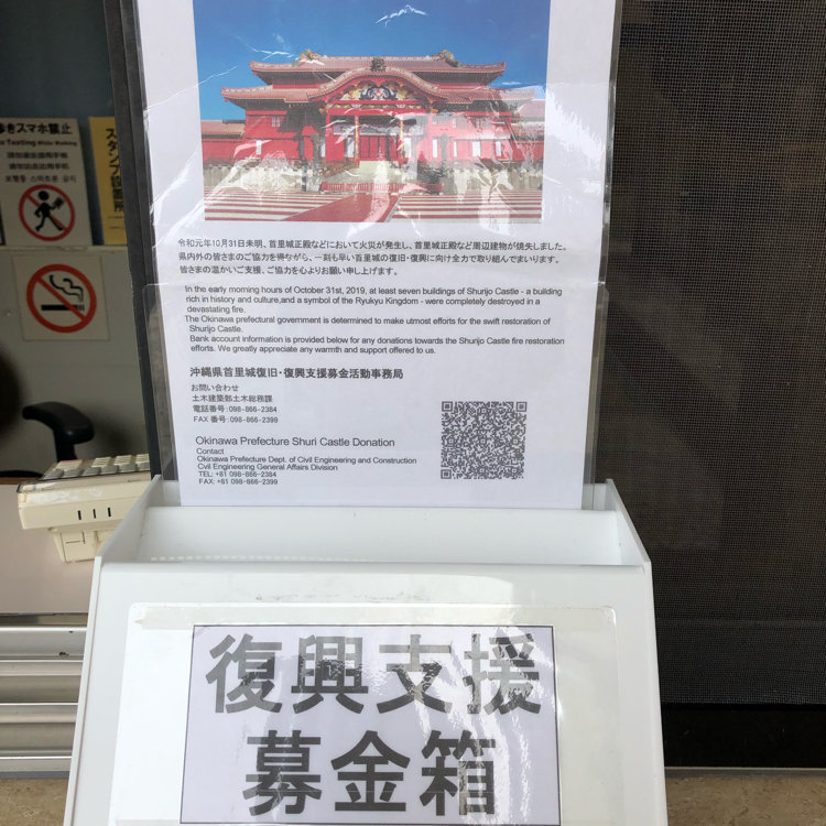 沖縄/首里城復興支援募金箱 いつかきっと!又あの素晴らしい首里城を 見る日が来ると信じてます! 頑張れ!沖縄!!👍👍 #冬のおでかけ #沖縄 #首里城 #世界遺産 #首里城復興支援募金箱