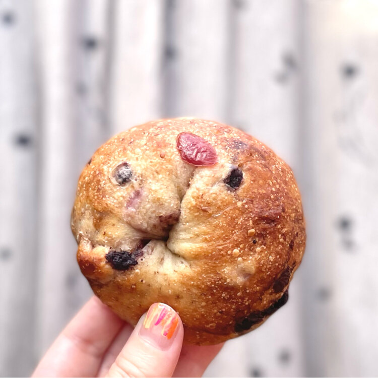 🥯🐐👓🍞🥖♬ もっちり しっかり ぎゅっ 噛めば噛むほど 美味しい♡ やぎぱん🐐👓さんの 🥯ベリーベーグル♬ あゝ ほんとに 美味しい✨⤴︎ #やぎぱん #パン屋さん #ベーグル #Myことりっぷ #ありがとう いつ行っても 心地よく 優しい気持ちで お店を出る♬ ステキなパン屋さん♡♡ あっ!ポイントカード出すの忘れた! ドンマイ ワタシ⭐️