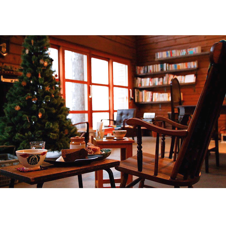 薪ストーブで暖まりながら、好きな場所でまったりできます!ソファー席でゆっくりや、ゆらゆら木の椅子に揺られながら読書も♬