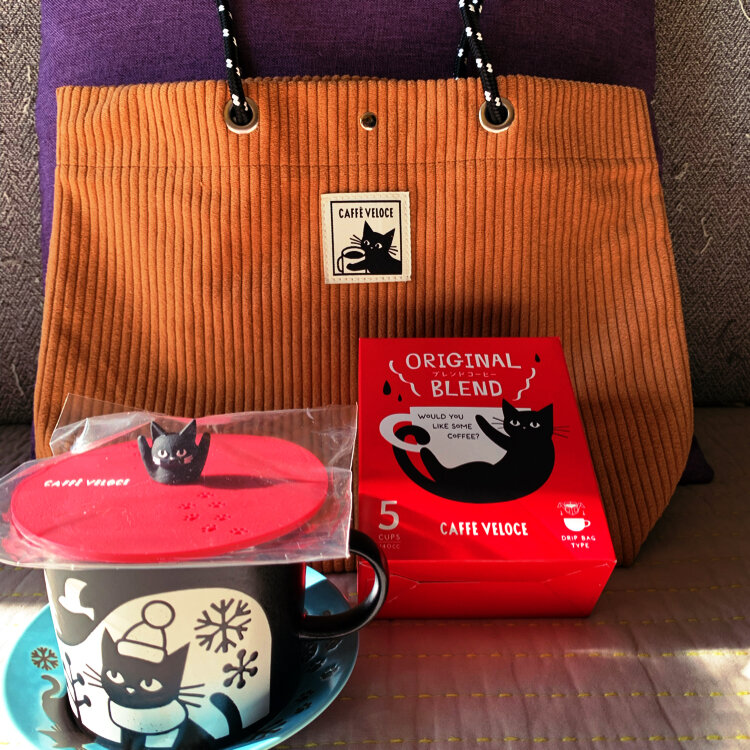 カフェ・ベローチェ 「冬の黒ねこハッピーバッグ」 ブラウンのコーデュロイバッグが 可愛い過ぎる〜🩷 マグカップも可愛い〜 ドリップコーヒーの赤のパッケージも 可愛い過ぎです😆 少し遅れて届いた クリスマスプレゼント🎁 サンタさん、ありがとう💕 #カフェ・ベローチェ #ねこ雑貨 #ドリップコーヒー