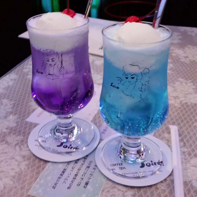 喫茶ソワレ お久しぶりです! 久しぶりにことりっぷを開き、皆さまの素敵な投稿を見ているうちに私も何かアップしたくなったので、インスタやTwitterで既にこすられまくっている喫茶ソワレの写真を… 実際に行ったのは8月頃です ずっと気になっていて、友達と京都に行く予定ができたので誘ってみるとあっさりOK すこし薄暗い店内に青白く弱い照明で落ち着く雰囲気 20分程並んだので満席でしたが騒がしくなることもなく、友達とのお喋り大会にぴったりでした笑 見た目も可愛く、友達と写真大会が始まり…笑 大満足で帰りました!笑 写真には無いですが、ケーキも注文しました♡どこかで昼食を食べて、京都散策をしてからおやつとして寄るのもありだなーと! 4月から新社会人になるにあたり実家を出ることになり引っ越しなどでバタついていましたが、コロナが落ち着いたらまたいろんな場所に行きたいな〜と思っています