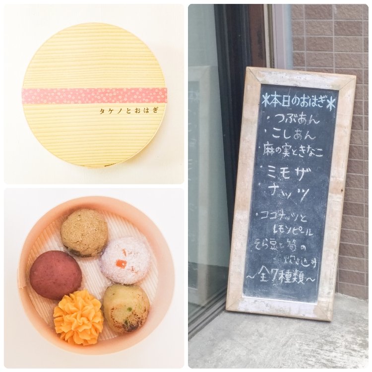 この日は右の7種類のおはぎがあり、奇数だと丸い箱に入れてもらえるそうなので5個選びました😊