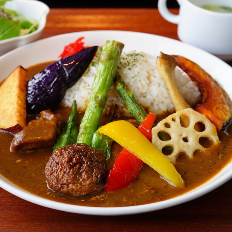 『ペレニアルロックガーデン春子谷地cafeミルクの里』で食べた牛タン野菜カレー🍛 彩り綺麗で牛タンとろとろ。大自然を眺めながら、美味しくいただきました😋 #わたしの街
