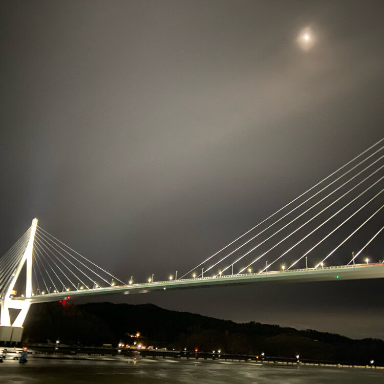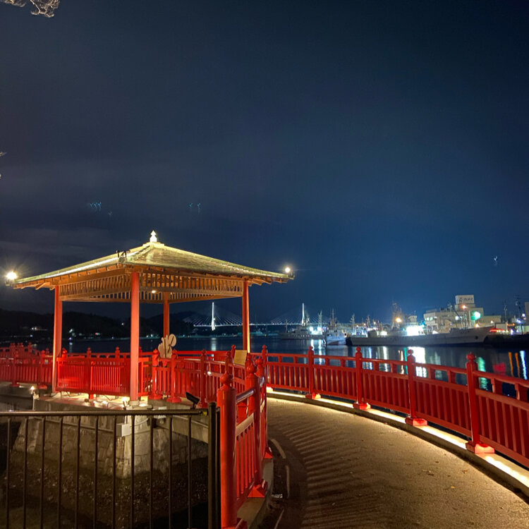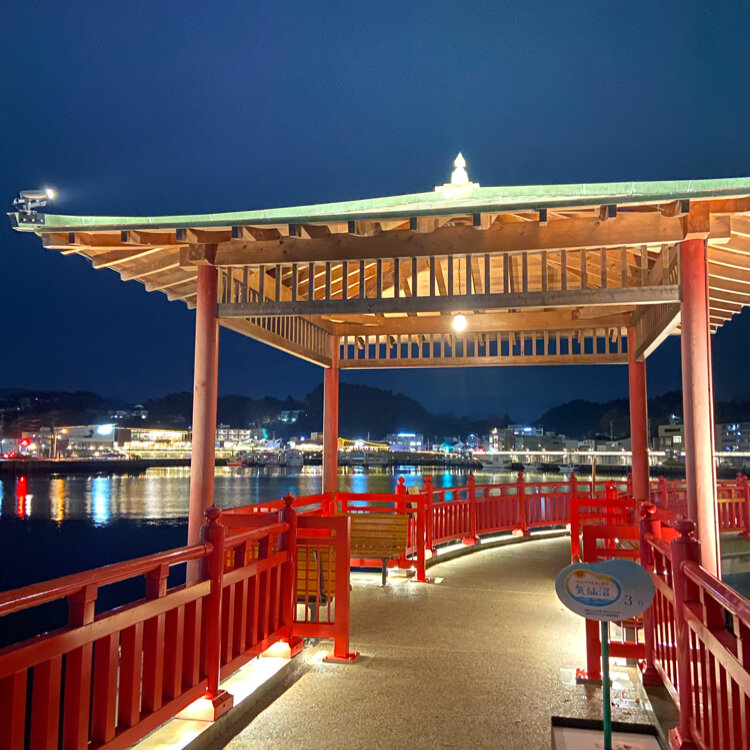 気仙沼 五十鈴神社の近くにある 浮見堂もライトアップされて いて素敵でした♪♪ それと別のスポットから見た 気仙沼湾横断橋🌉 付近を散策したあとは、 アンカーコーヒー内湾店さんで エスプレッソを☕️ #ことりっぷと一緒 #秋の装い