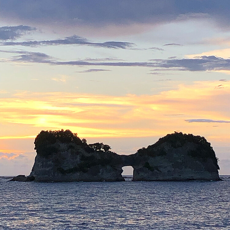 風が吹いて寒かったけれど、お土産屋さんであったかいコーヒー買い、ベンチで飲みながら日が沈むのを待ちました🌅