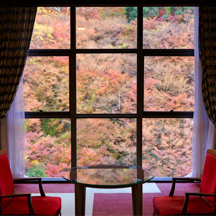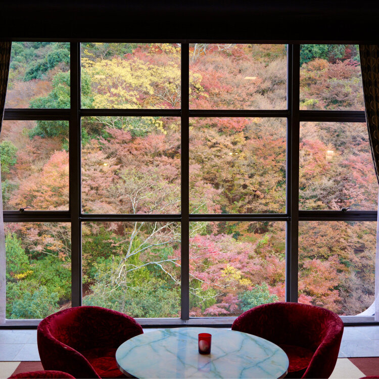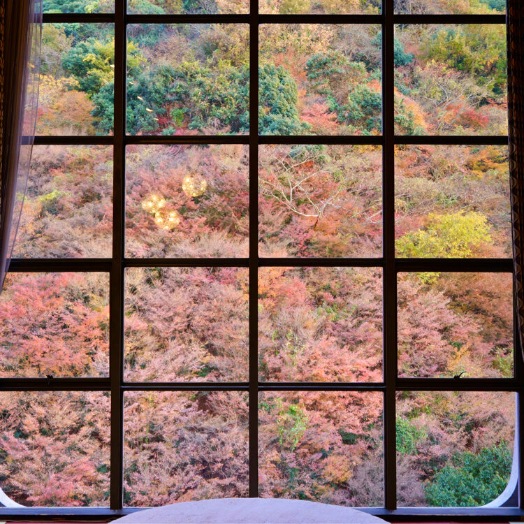 『奥道後 壱湯の守』の窓紅葉。