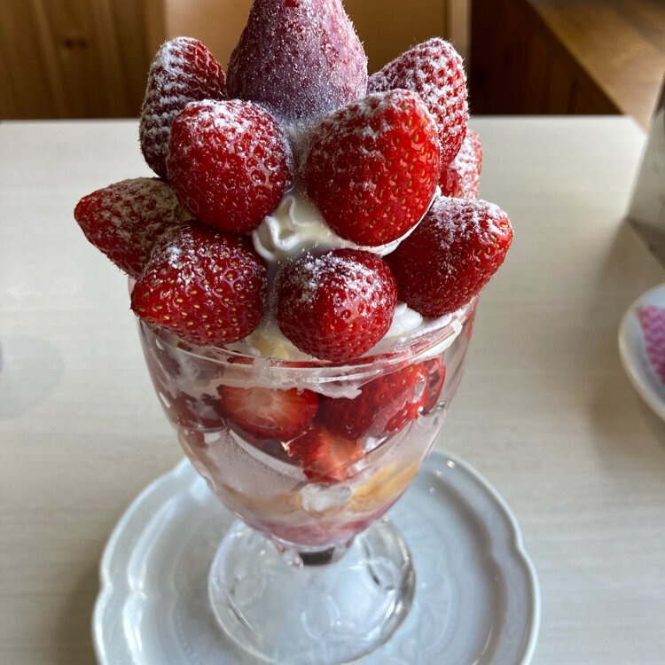 今シーズンのいちごパフェも最高でした🍓 私が知ってる中で最もフレークが少ないパフェ この美味しさ、量で800円は安い! 5月頃までいただけるそうなので、ぜひ足をお運びください^_^ #岩沼 #白いちご #いちごパフェ
