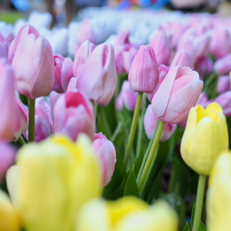 .❁.*:.✽.*.𝙷𝙸𝙱𝙸𝚈𝙰 𝙱𝙻𝙾𝚂𝚂𝙾𝙼 𝟸𝟶𝟸𝟼②.❁.*:.✽.*. 東京ミッドタウン日比谷の大階段は、映画ウィキッドのチューリップ畑になっています… 咲いた、咲いた、あか、しろ、きいろ…♪♪ 春らしい華やぐ景色でした(^^) #日比谷#ミッドタウン#ウィキッド#花#フラワー