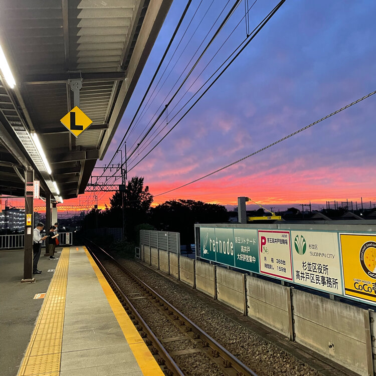#夕日 駅できれいでパチリ。 夏がおわったきがしました。