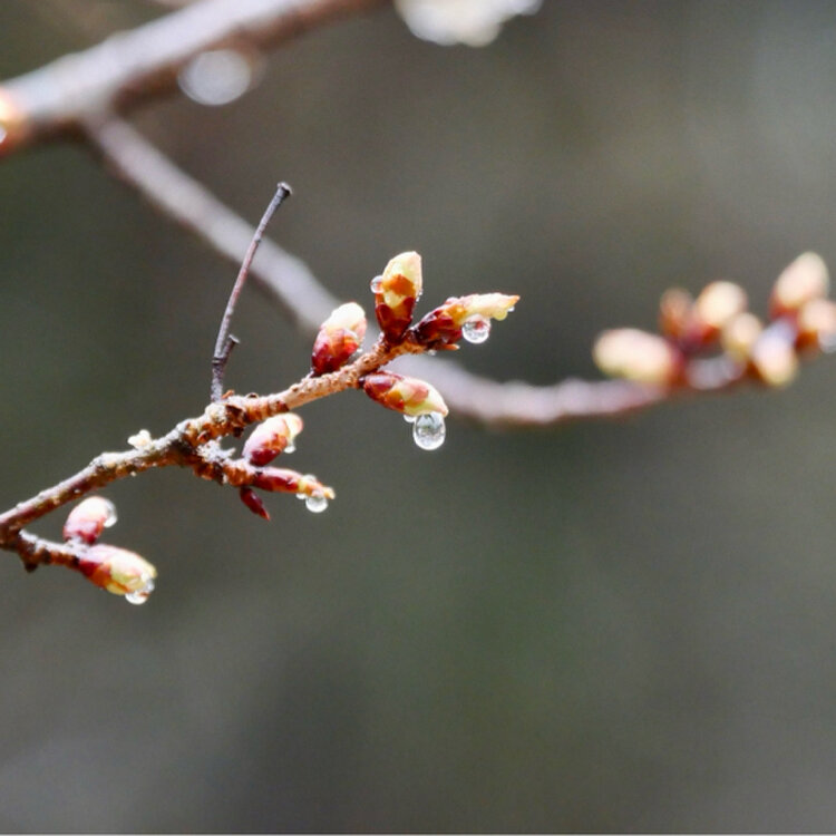2026.03.10❄️☁️/行く途中雪に降られた日🛵 初めての城跡公園を🏯散歩してみました・:* #蕾 #葉 #水滴 #ウソ ♂♀ #滝山城跡 #滝山公園