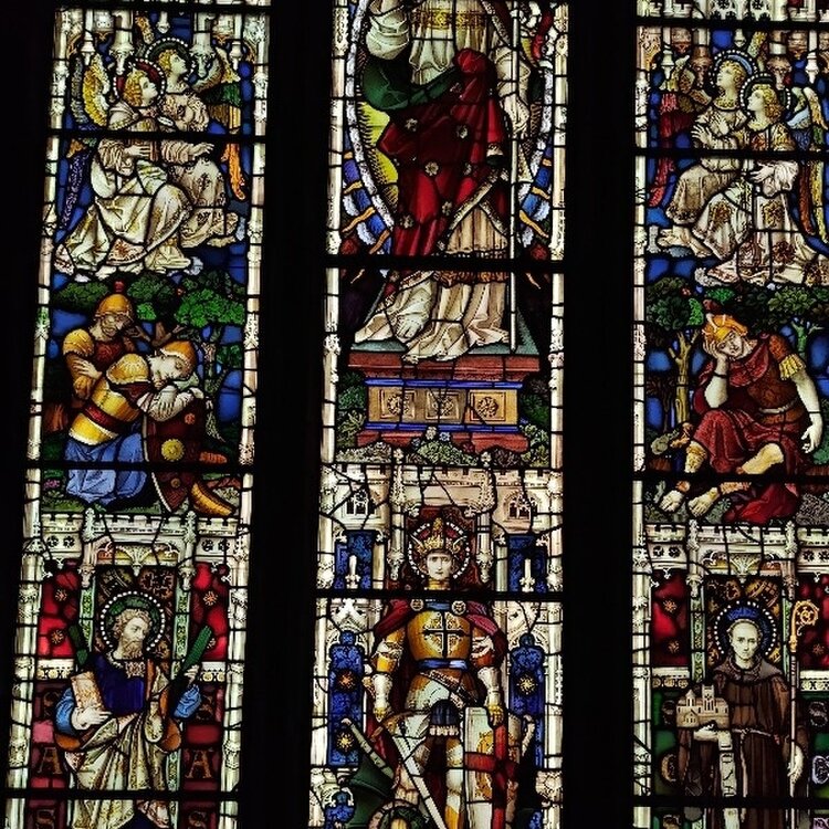 19世紀後半から20世紀初頭にかけてイギリスで制作され、教会の窓を飾っていたステンドグラスが展示されています。