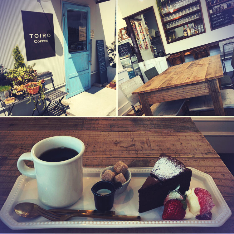 東かがわ市三本松にあるToiro coffee とっても可愛い店内💕 ホットコーヒーとガトーショコラをchoice 次回はパフェ食べよ😏