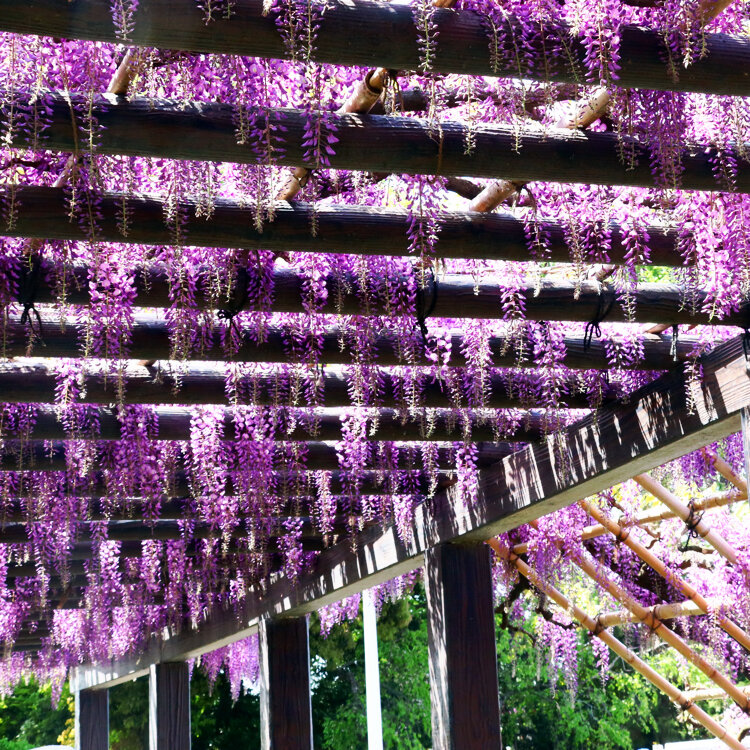 藤だより💜 5年振りに公開になった 京都市鳥羽水環境保全センターの藤棚 明日、21日までの公開なので とり急ぎの投稿です😊 * 5年間のベールが剥がされて 全長120㍍の美しい藤棚が見られました💜 ハチ🐝さんにおののきながら 藤楽しんで来ました😊 * 今回は駐車場🅿️が無く 竹田駅から直行の臨時バスが出ています🚌 室内イベントやキッチンカーも出ています😊 興味のある方は是非お出かけください💜 * 『ソスイとツツジとフジとワタシ』 来週の27日28日29日には 蹴上の浄水場の4600本のツツジも 公開となります😊🩷 #藤 #春色さがし #はなまっぷ #ソスイとツツジとフジとワタシ #電車旅
