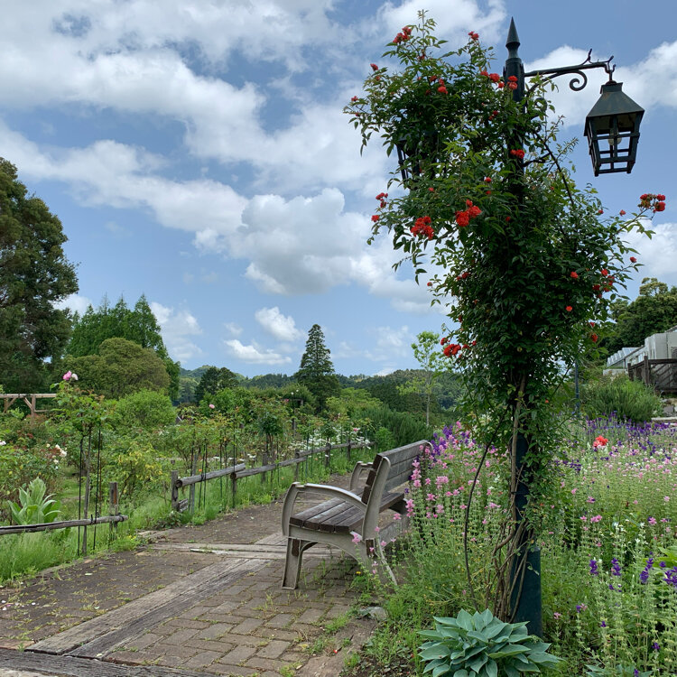 以前、千葉県民だった頃に 度々立ち寄った、高台の ハーブガーデン、今は、バラ園に🌹。
