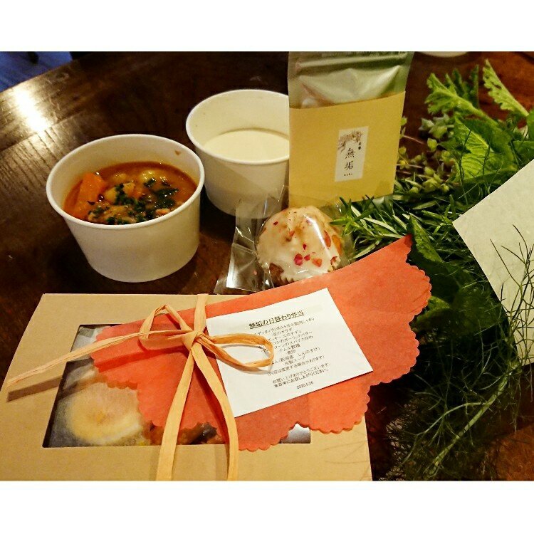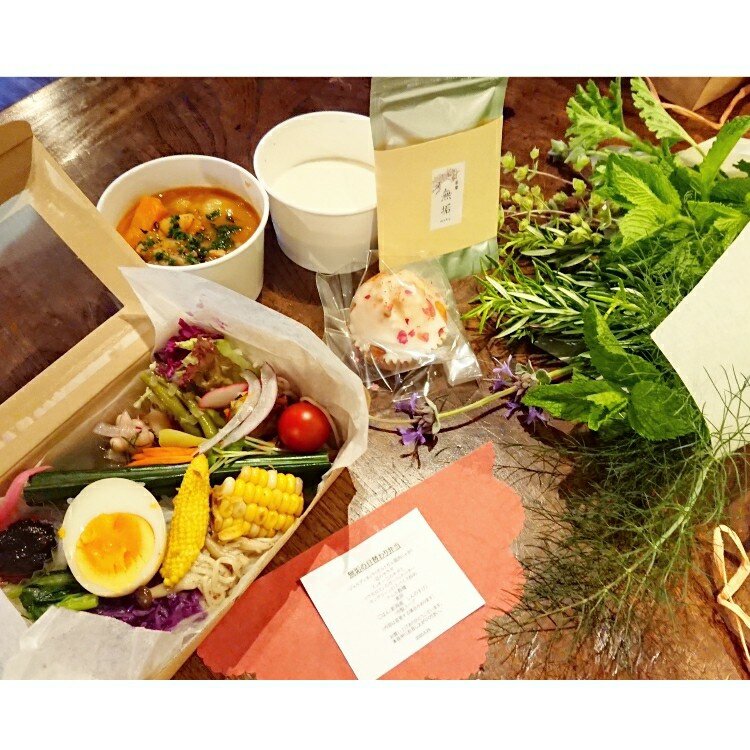 いつもは素敵な器に盛り付けられているらしいのですが、密になるとのことで、お弁当を持ち帰りということで、ちょっぴり残念。