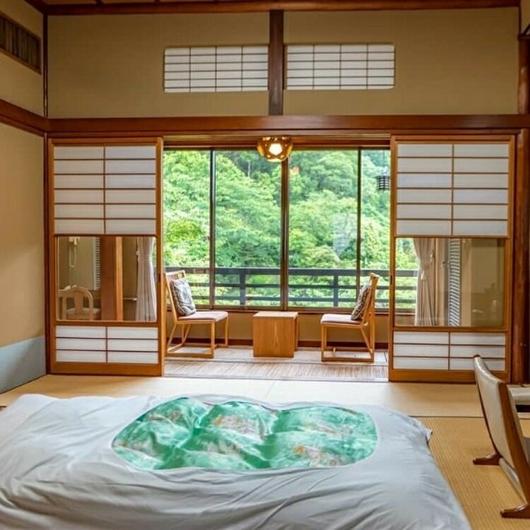 窓からは清流が眺められ、心地よい水音や鳥の囀りが聞こえます。