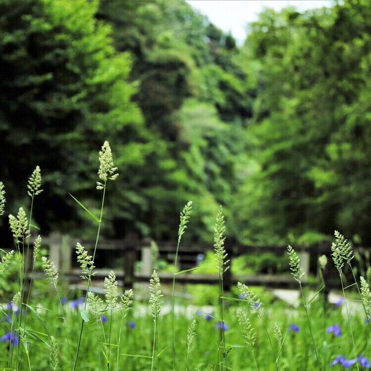 木でつくられた歩道は歩きやすく、周囲にはキショウブなどの水生植物が咲いています🌼