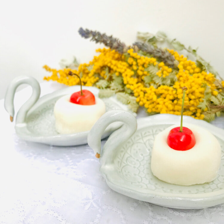 本来はろうそく皿なのですが、ちょうど(?)大福置いたらピッタリ合ったのでそれでいいかと(笑)