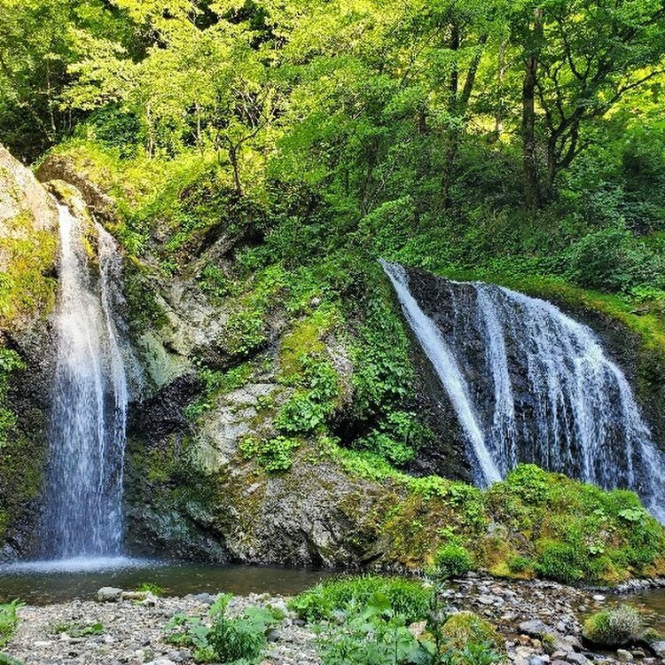 帰省の締めくくりも滝巡りで。ここ十二滝は近くまで降りていけるスポットもあって天然クーラーが体験できます! 酒田は本当に良いところがたくさん🍃🌲🐝✨