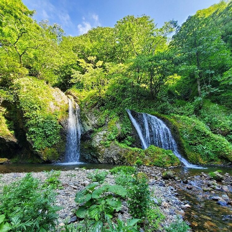 滝の周りは涼しいですね。 何にも遠慮せず深呼吸でリフレッシュ! #やまがたの滝 #酒田 #庄内 #滝 #青空
