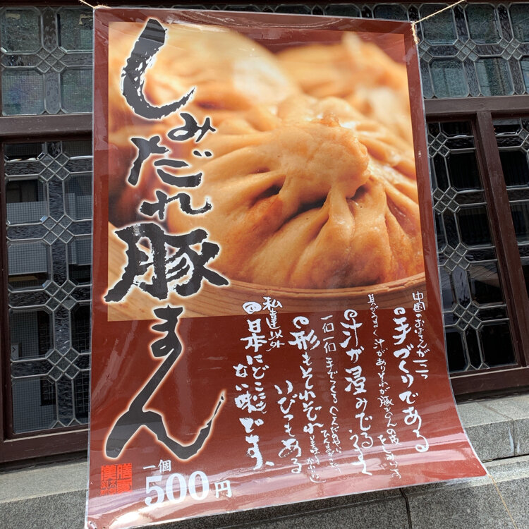 タレの染み込んだあつあつふかふかの生地の中は、豚肉、椎茸、山くらげなどゴロゴロと大きめの具で、豚まんの皮にしっとりと浸みこむほどの肉汁が入っています。