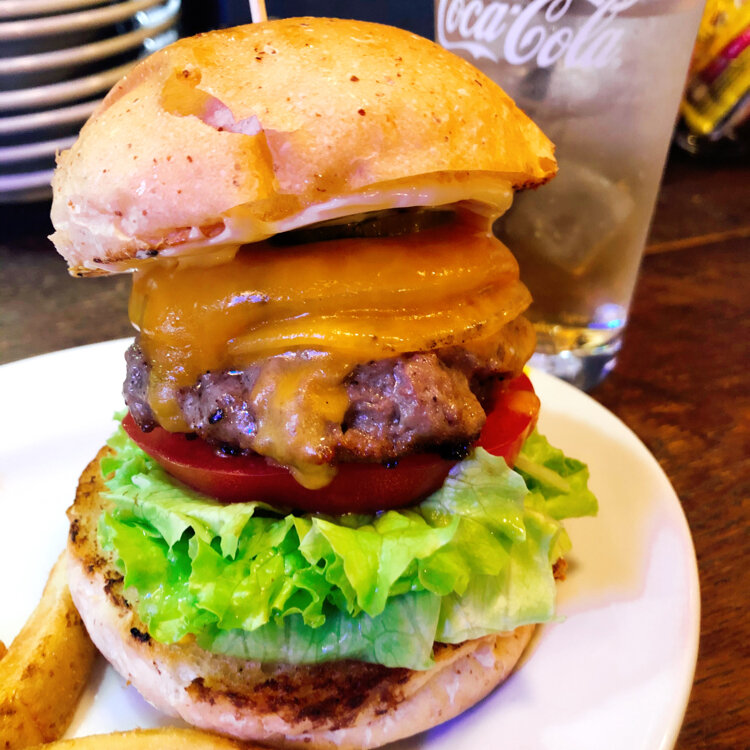 オーダーしたのは鉄板のチーズバーガー。肉汁の溢れる粗挽きパティとシャキシャキ野菜のバランスが最高でした🍔