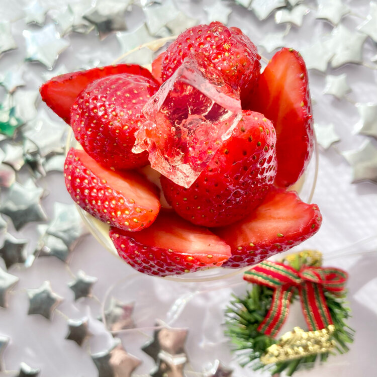 大きなショートケーキには🍈がゴロゴロたっぷり😋