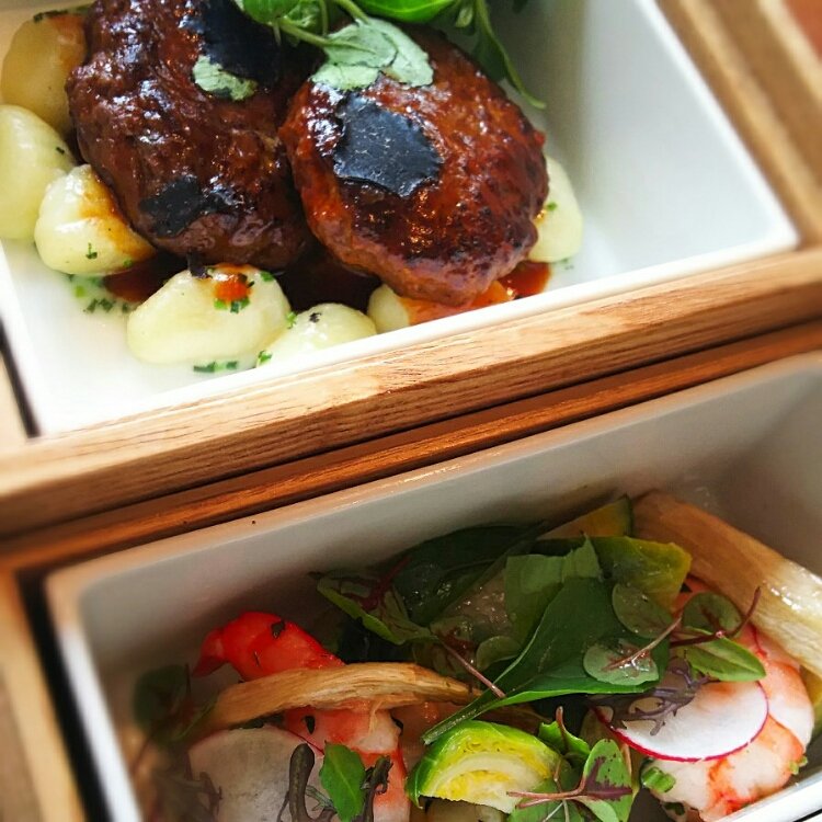 虎ノ門ヒルズにあるアンダーズ東京51階のレストランタヴァンのランチボックス。 メインは選べて、前菜などがひとつの重箱に入って運ばれてきます。 トリュフなどおいしい素材が詰まってて、優雅な空間で食べられます。 3200円なので高いですが、たまの贅沢にはいいかも。デザートもついてきます~