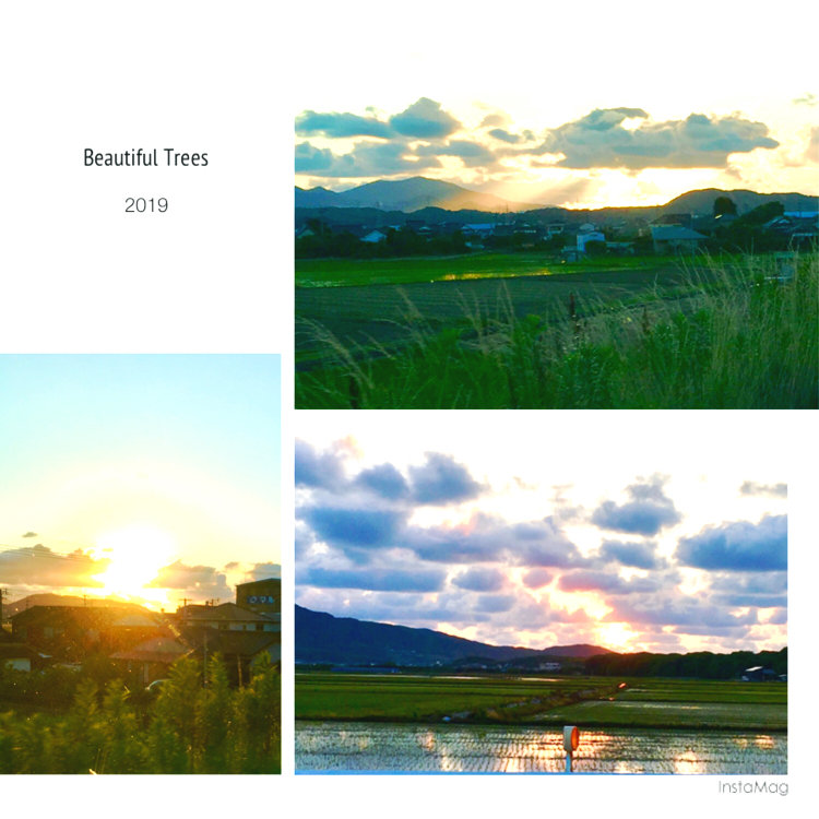 #夏の旅2019 家に帰る途中…夕日と、雲が幻想的で。綺麗でした~(〃^ω^〃) なんだか、癒される景色で、ホッとした気持ちになりました~(*´∇`)ノ💞