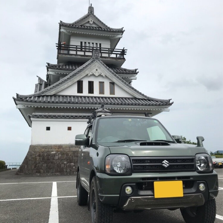ドライブしてたら遠くの山の上にお城発見! 行ってみよう、と、細い山道を進んで頂上についたら、お城、ではなく展望台でした。 気になってた所にズンズン行けちゃうのが、ジムニーの良い所。 城主のごときドヤ顔🤣