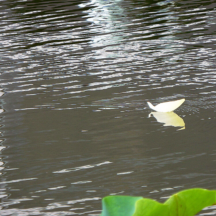 水面に散った蓮の花びらが舟のようにすぃーっと水面を漂って行きました
