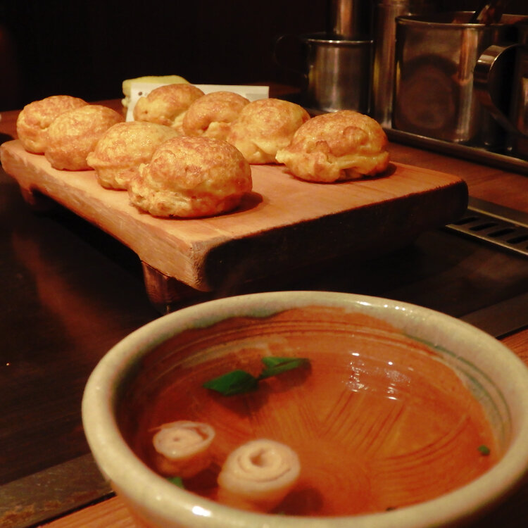 おすまし仕立ての出汁に浮かばせて 熱々ふわとろ玉子味の明石焼きをちびちび食べて 目の前のお好み焼きと焼きそばがジュージューと焼ける音と香りも楽しみます🤗