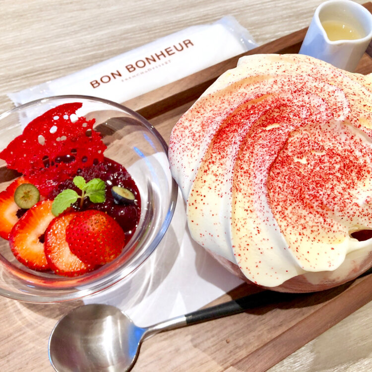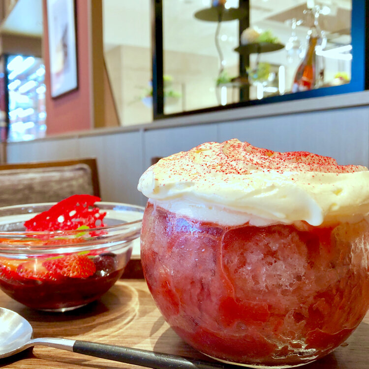 🍓✩°。⋆♡*°🇫🇷ボンボヌール流の鮮やかな赤い果実のかき氷です✨