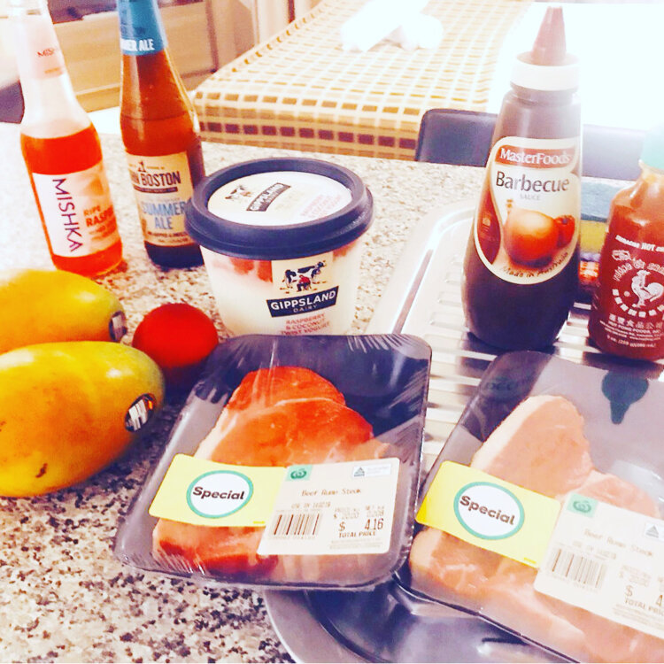 Wooliesでお買い物されたんですね〜😊 ローカルなので、親近感湧きます♡~(>᎑<`๑)♡ やっぱりOZ beef🐮とビール🍺は外せませんよね😋そしてマンゴーも❣