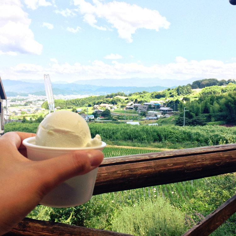 葛城山の麓にある、ラッテたかまつさん♪ 新鮮な美味しい牛乳で作られた乳製品が色々💡 山と畑に囲まれたのどかな風景を眺めながら、暑い夏日にピッタリのアイスを食す♪ #カフェ #アイス #田舎 #牛さんいてます #乳搾り体験もできるみたいです