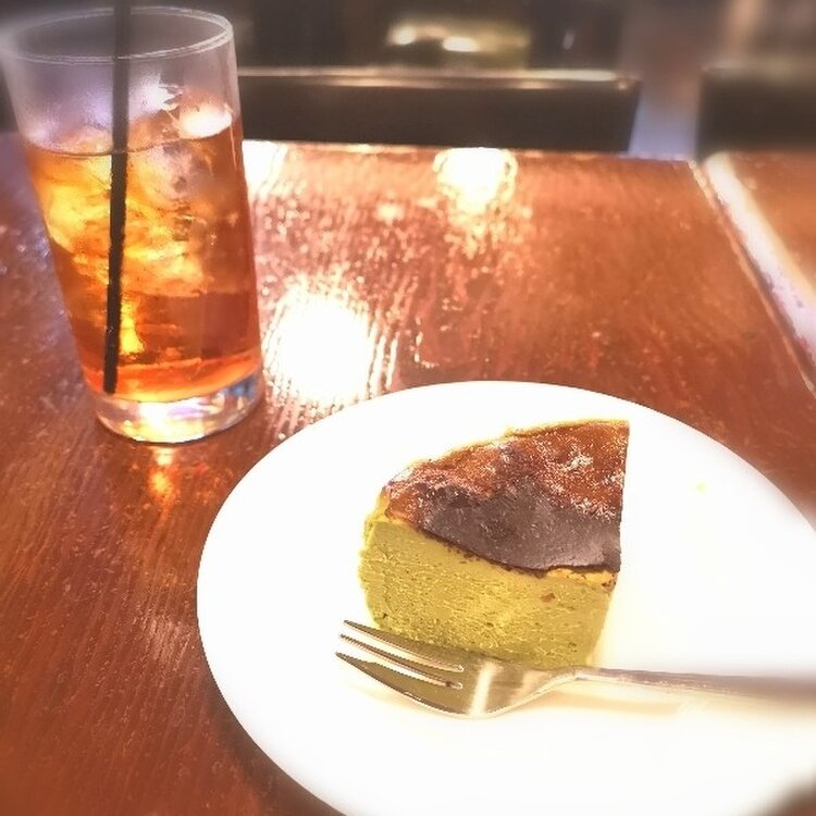 午後のおやつ😋🍴☕🥧 最近ここのお店のチーズケーキ🧀🥧がとても人気らしい💡😲 お店の名前は❰CHICCI🧀🐭❱ チョコミントオレオチーズケーキ、ココナッツチーズケーキ、バスチー抹茶チーズケーキ、バスチーほうじ茶チーズケーキ等々✨🥧🍴 今回はバスチー抹茶チーズケーキとアイスティーを💓 凄く滑らかなバスチーです🐭🧀 次回は何にしようかな~😌💓 #CHICCI #ごほうびケーキ #バスチー #抹茶チーズケーキ