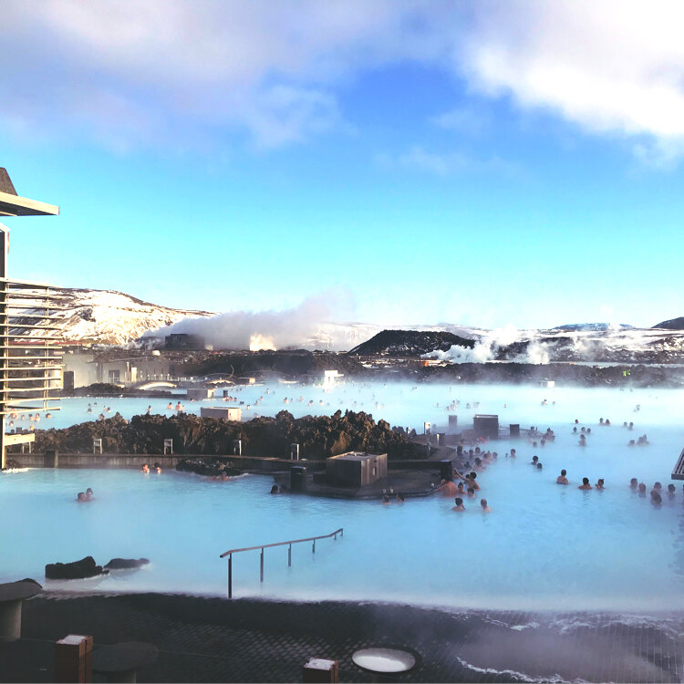 外気温は0℃程で強風が吹き付ける中、でもお湯は温かくて癒された♨️ 見上げれば空も青くて、ほんとにお湯も青くて、端から端まで行くのは遠すぎて、バーでお洒落なドリンク注文して、温泉入りながら飲んで。 日本には無い楽しい体験でした。