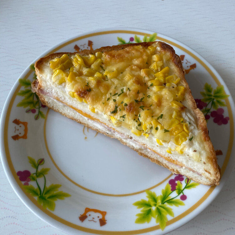 お昼に食べましたが、嶽きみクロックムッシュはチーズも挟まれてて嶽きみの甘さとチーズのしょっぱさがマッチしてました✨