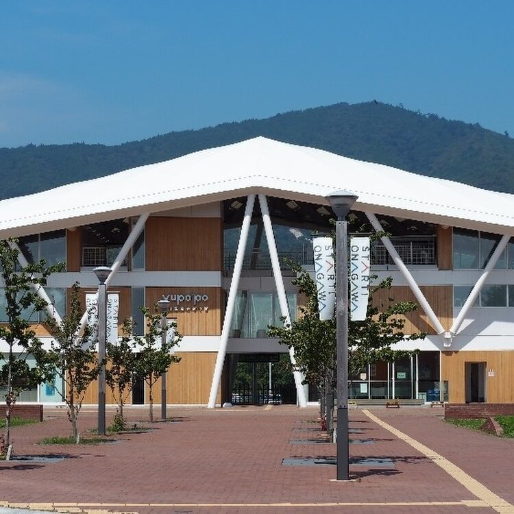 山を背に、正面には海を見据えて建つ姿は、ウミネコが羽ばたく姿をイメージしているんですって。 その2Fには「女川温泉ゆぽっぽ」が。