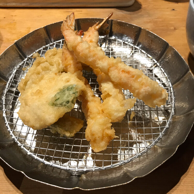 金子半之助の天ぷらめし、で夕食頂きました。 同じく「日本橋 天丼」「日本橋稲庭うどんとめし」の店舗もあるのでご注意です。 頼んだのはえび天ぷら定食。 2度に分けて揚げたての天ぷらがでてきます。 あさりの味噌汁、食べ放題の漬物3種も美味しいです。 価格もリーズナブルで満足できます。 この日はたまたま並ばずに入れました^_^