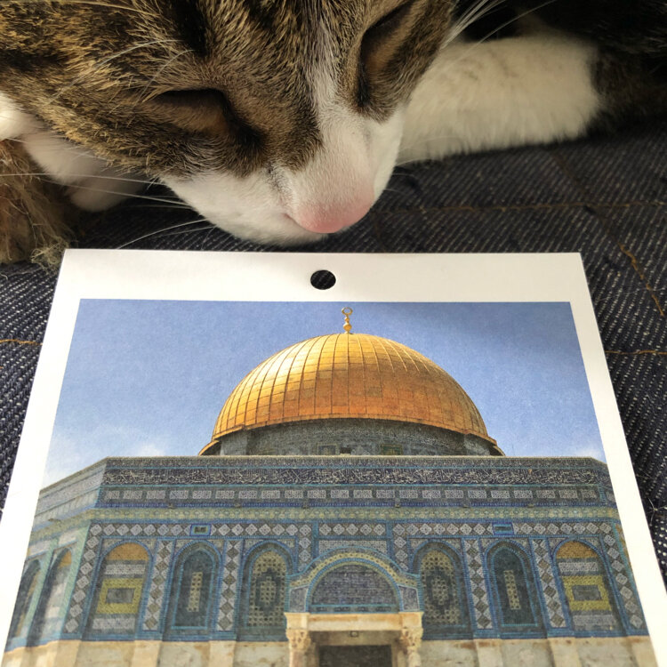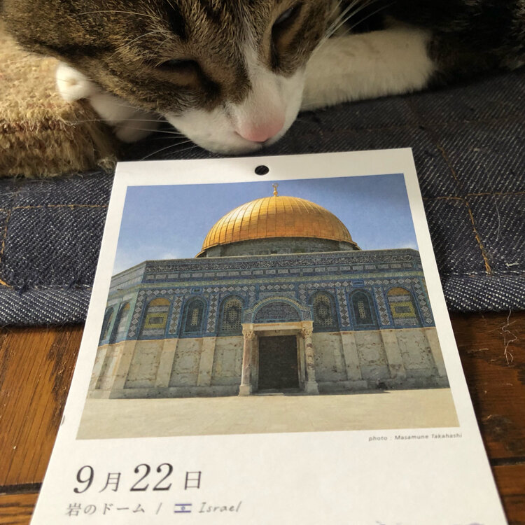 ☆*:.。. 世界一周365日カレンダー🗓.。.:*☆ 9月22日 岩のドーム イスラエル🇮🇱 ♪🎶本日レバノン🇱🇧からイスラエル🇮🇱へ入国♪🎶 😽久々モーちゃん登場〜よく寝てます🐈 ˚✧₊⁎聖なるドームは天国へと続く⁎⁺˳✧༚ ドームの中心が金色に輝くイスラム教のモスク。 イスラム教第三の聖地とされているが、いたるところ で目にするイスラエル国旗が『ここはユダヤの土地』 と訴えてくる。 ここのモスクでみなさんお祈りをされるのでしょうね。 金色がかなり目立つモスクですね。 #イスラエル#モスク#イスラム教#聖地