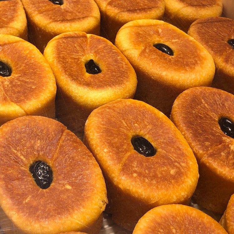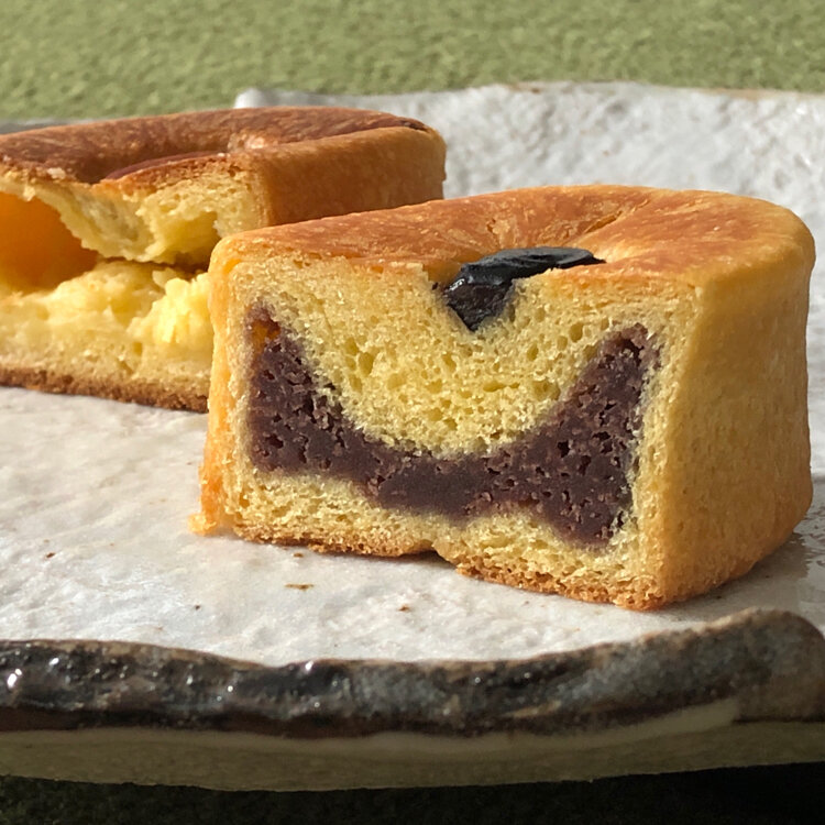 中央には目印の黒豆(こしあん)とアーモンド(クリーム)