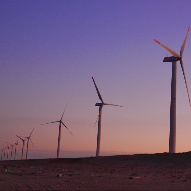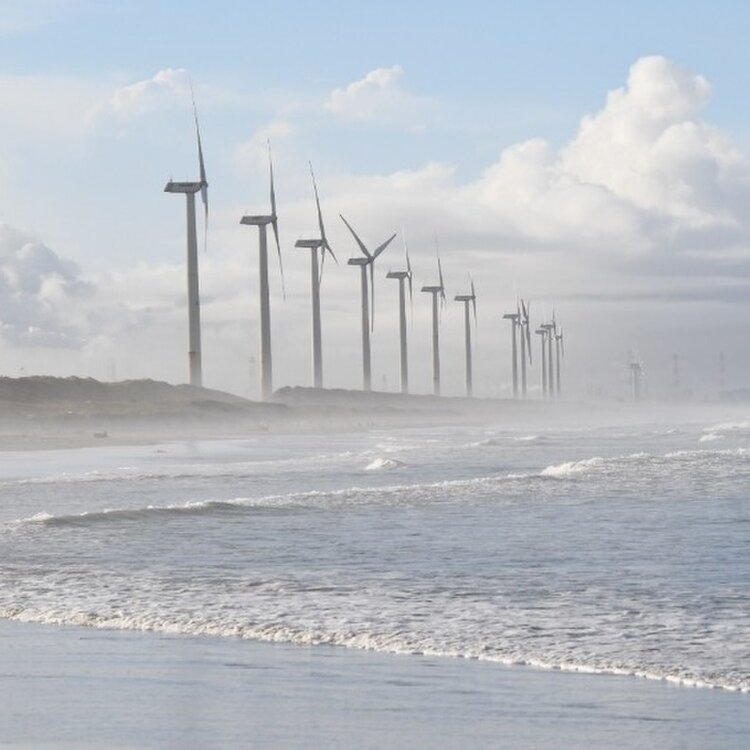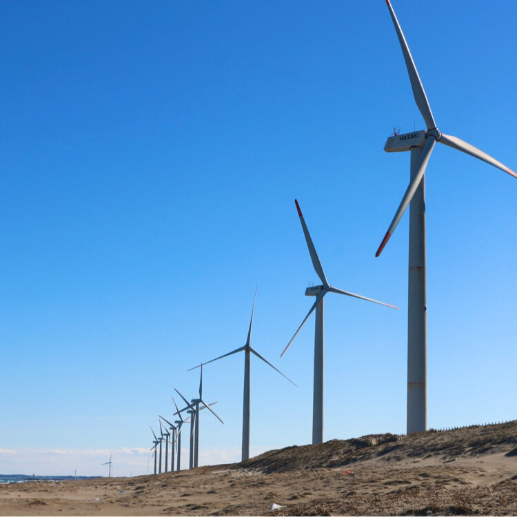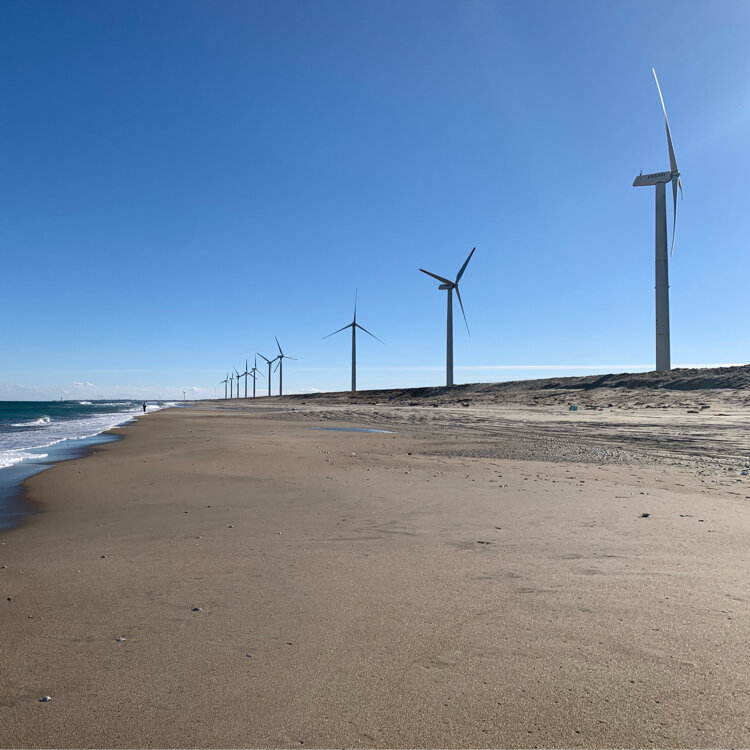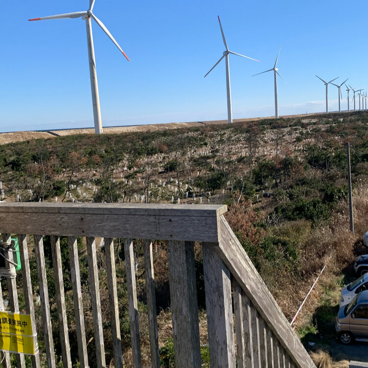 以前から見てみたかった、神栖市の海岸線に並んで立つ風力発電用の風車。