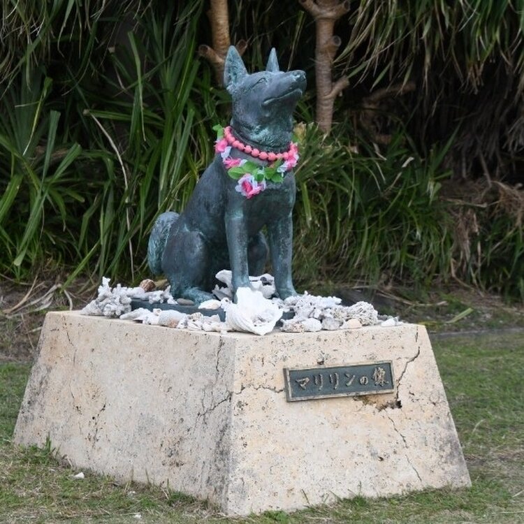 「マリリンの像」は、シロが泳いできた阿嘉島の方を向いています🐕🦺♥
