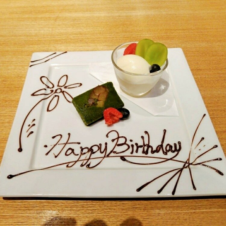 ☆築地ボンマルシェ ランチ 夫が誕生日だったのでランチでお祝い🎉 予約時に誕生日での利用と伝えたらバースデープレートもつけてくれました💞☺️ 喜んでもらえたのでよかったです😃