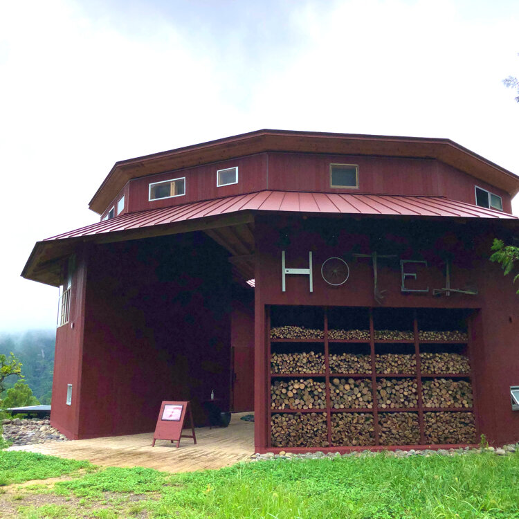 上から見ると「クエッションマーク」の形の建物、クエッションマークの点の部分がホテルになっていっています。ごみゼロを目指す上勝町のゴミステーションも構える、綺麗な自然に溶け込んだ素敵な施設です。 廃材を利用した建物とは思えない素敵な窓、建物。奥には緑の広場から「いっきゅう茶屋」が見えました。自然を守る素敵な取り組み、いろどりの町上勝町、私達も見習わなきゃいけないと思いました🌳 #わたしの街 #上勝町 #ごみゼロ