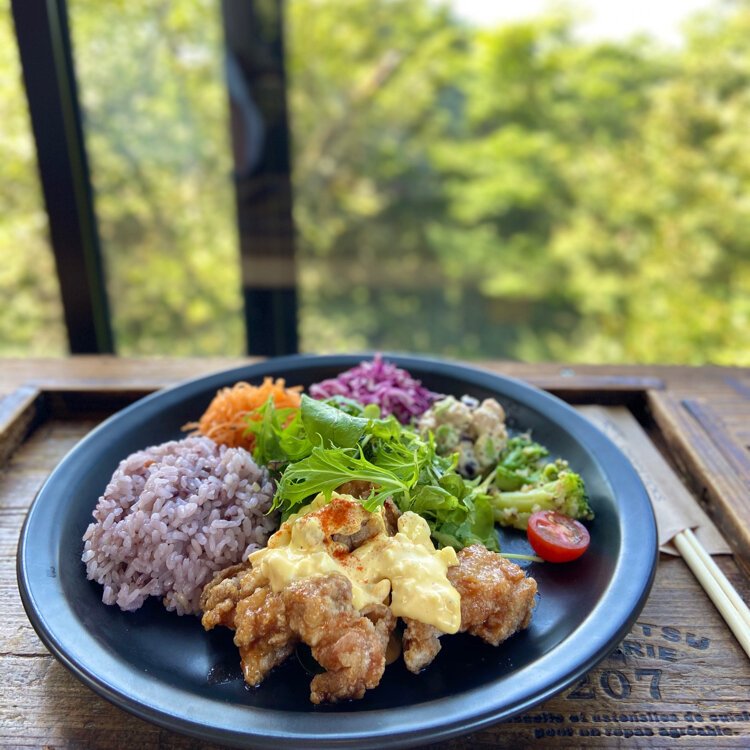 外のテラスで蝉の鳴き声を聞きながらランチすることにし、チキン南蛮ワンプレートを注文❣️