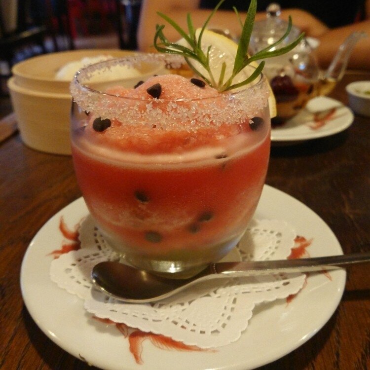 スイカとジャスミン茶のスムージーは見た目からして可愛らしい💕下にはキウイのゼリーが。飲み物兼デザートなドリンクです。