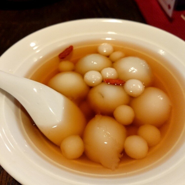 ライチ紅茶のほんのり甘いシロップにすりごま入りのお餅が入ってます。